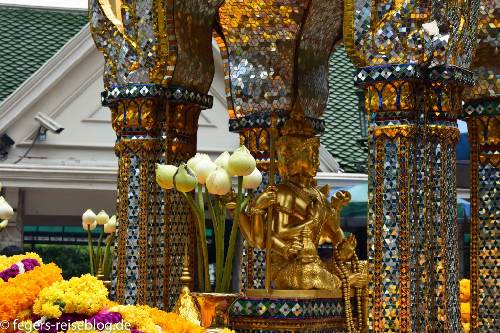 Neben dem berühmten Erawan-Schrein ist der Golden Mount ein lohnendes Ziel bei einer Tour durch Bangkok. Ein besonderes Erlebnis ist dabei die Fahrt mit einem öffentlichen Schnellboot auf den Klongs – schiffbaren Kanälen, die kreuz und quer durch die Stadt führen.