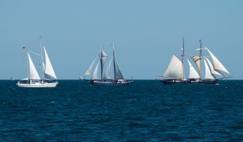 Bei der Hanse Sail gibt es einiges zu erleben: vor allem natürlich Segelschiffe unterscheidlichster Größe und Bauart. Manche Schiffe kann man unter dem Motto „open ship“ besichtigen , und viele bieten Mitfahrten an. Besonders bei solchen Mitfahrten auf offener See