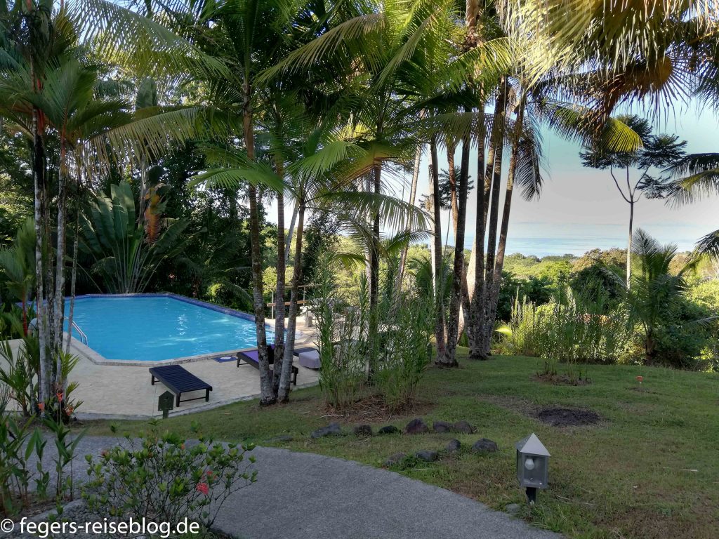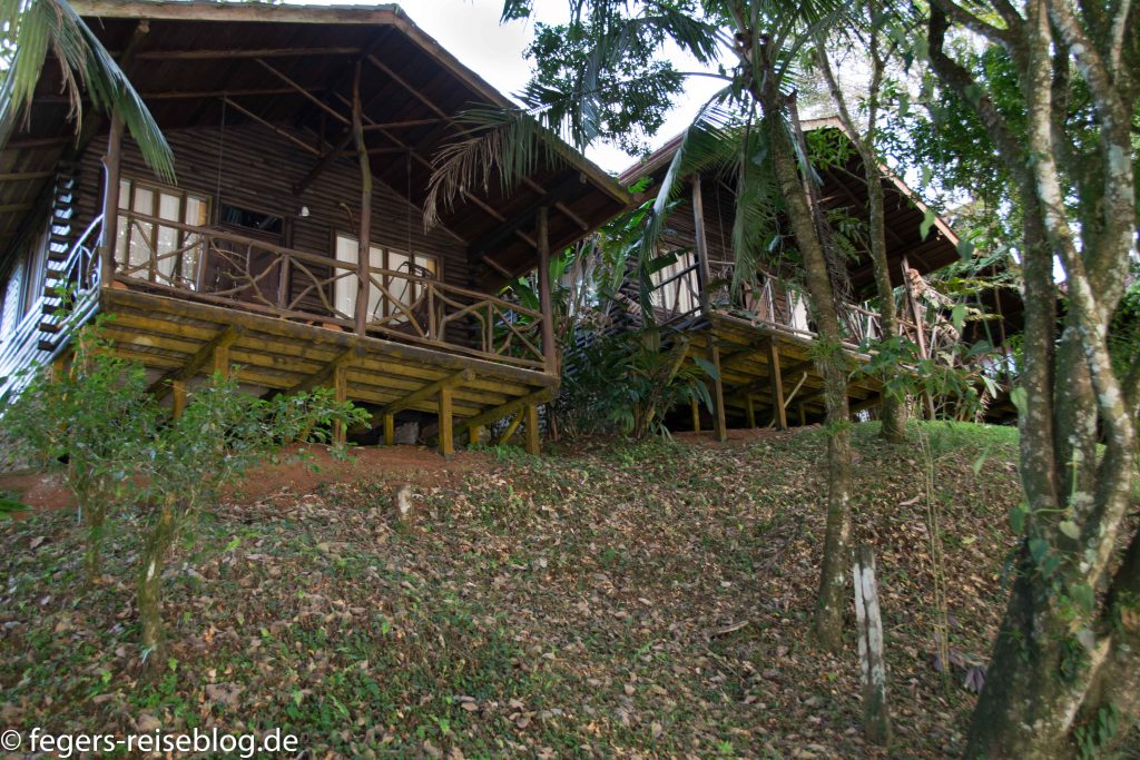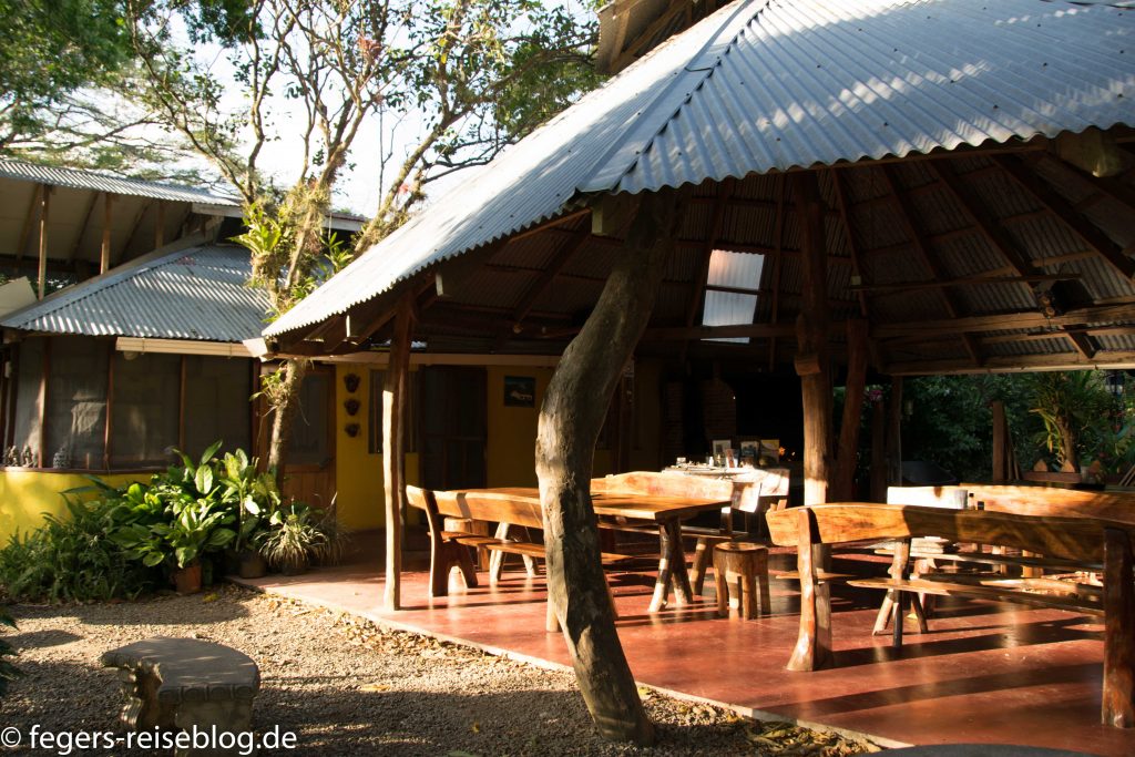 Abseits der großen Orte findet man die schönsten Unterkünfte: häufig in Blockhütten direkt am Wald, oder in einer kleinen Anlage mit Pool. Besonders genießt man Unterkünfte mit deutscher oder schweizerischer Leitung, weil es hier oft selbstgebackenes Brot oder eurpäisch angehauchte Abendessen gibt – eine kleine Abwechslung zu Reis mit Bohnen. Gemütlich gehts im Rancho zu: das ist der offene, überdachte Aufenthaltsraum der Lodges, in denen gegessen wird.