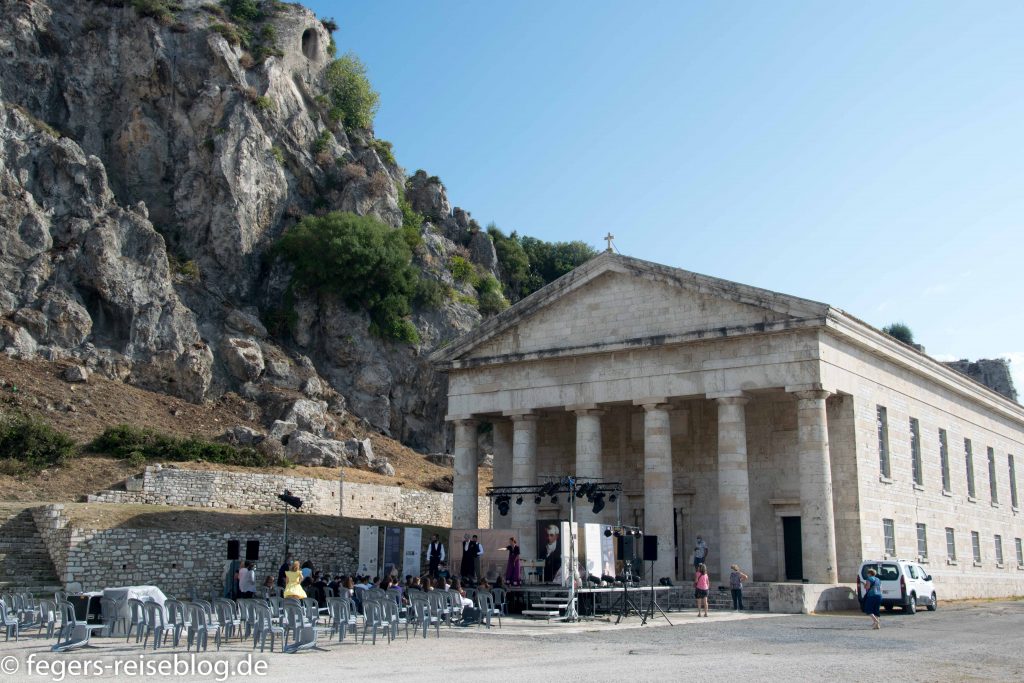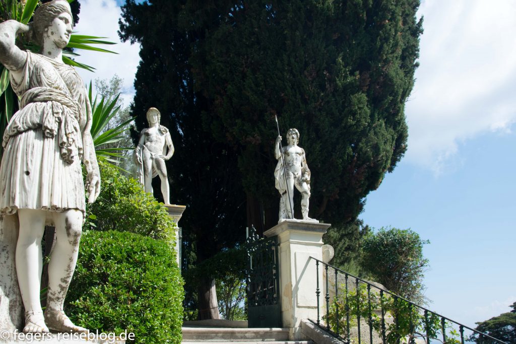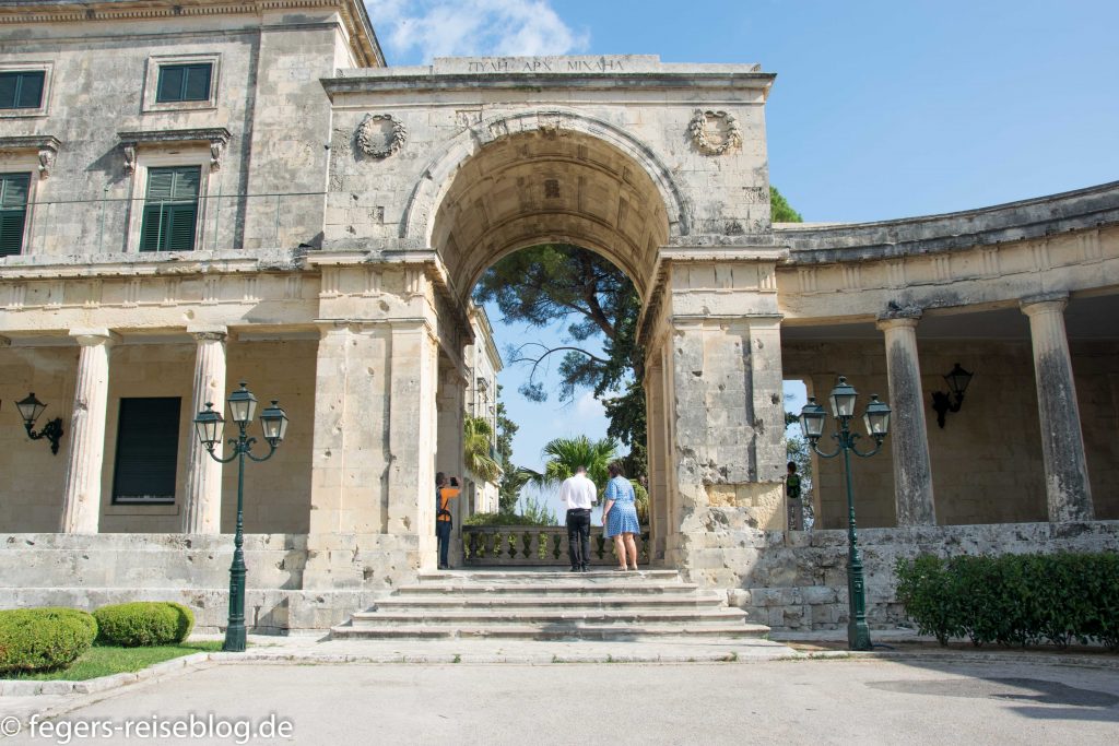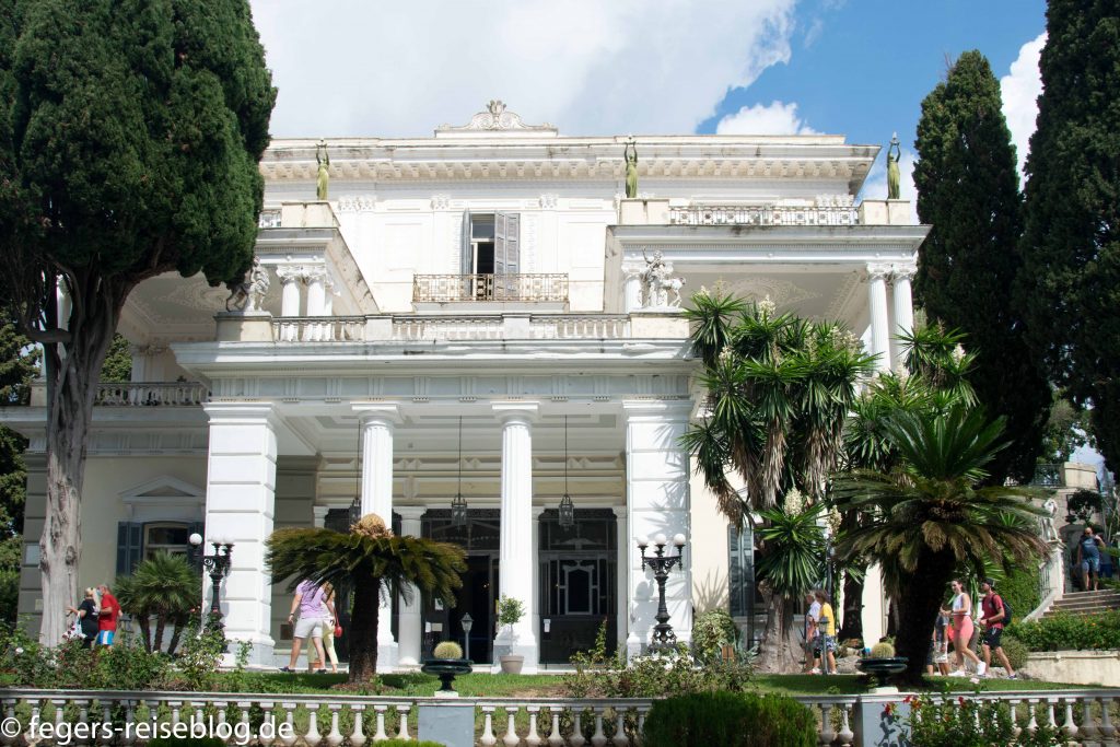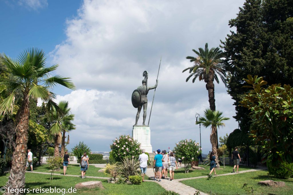 Im Achilleion, einem Palast südlich von Korfu Stadt, haben gleich zwei kaiserliche Hoheiten ihre Spuren hinterlassen: Kaiserin Elisabeth von Österreich, gennant Sissi, hat das Haus 1889 gekauft und zu ihrer Sommerresidenz umgestalten lassen. Einige Jahre nach Ihrem Tod wurde es dann 1907 von Kaiser Wilhelm II erworben. Besonders beeindruckend ist die Gartenanalge mit Blick auf das Meer und die Stadt.