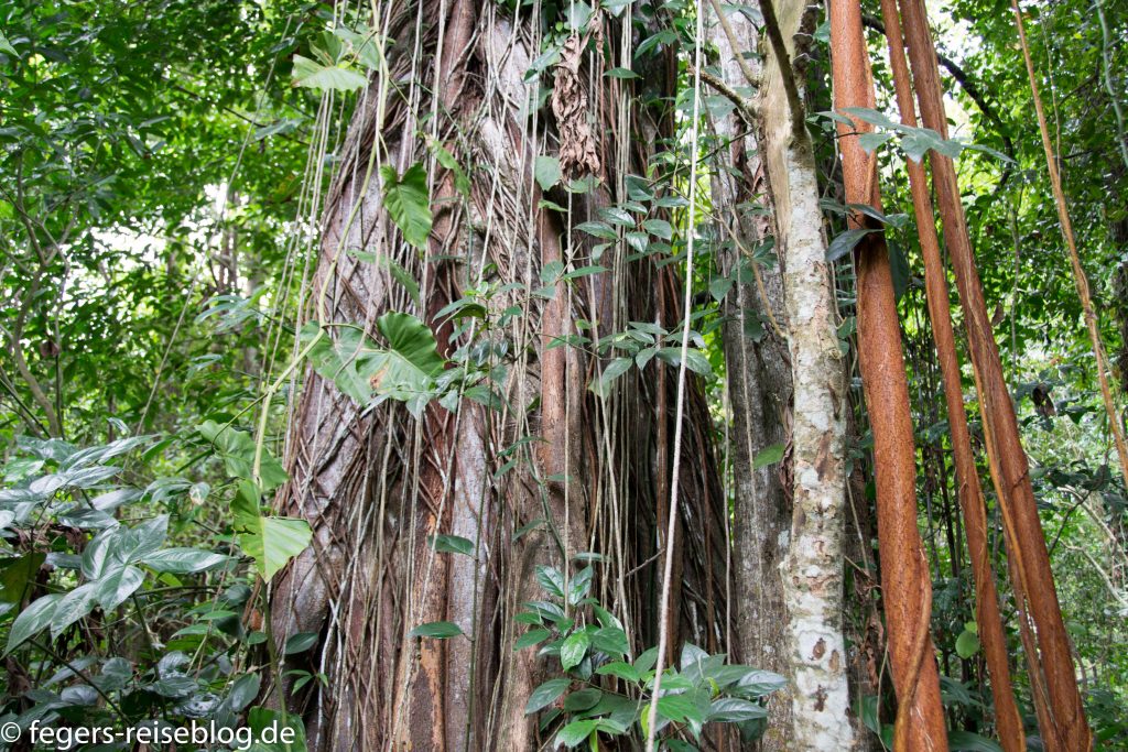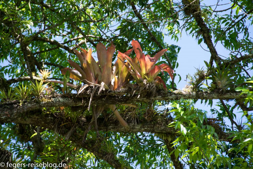 Undurchdringlich und geprägt durch unzählige Grüntöne steht der Regenwald vor dem Besucher. Glücklicherweise gibt es – vor allem in den Nationalparks – Wanderwege, die ein Tor in diese fremde Welt bilden. Urwaldriesen mit meterhohen Brettwurzeln, Würgefeigen, die ihre Opfer im Jahrzehnte dauernden Kampf erwürgen, und Aufsitzerpflanzen, auch Epiphythen genannt, sind nur einige der botanischen Wunder, die den Besucher fesseln. Epiphyten wie z.B. Bromelien setzen sich in Astgabeln oder auf Ästen fest, ohne ihrem Wirtsbaum zu schaden. Wasser und Nährstoffe nehmen sie aus dem Regen und aus der Luft.