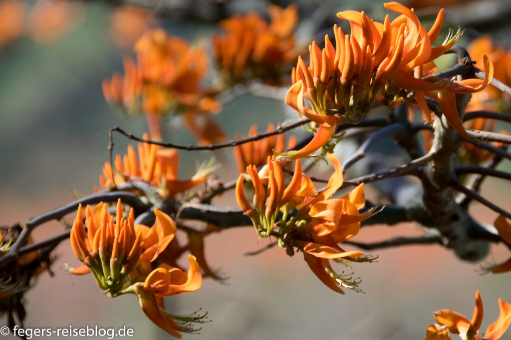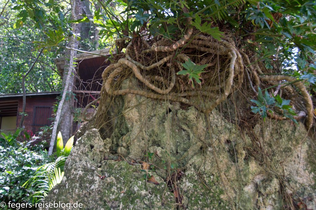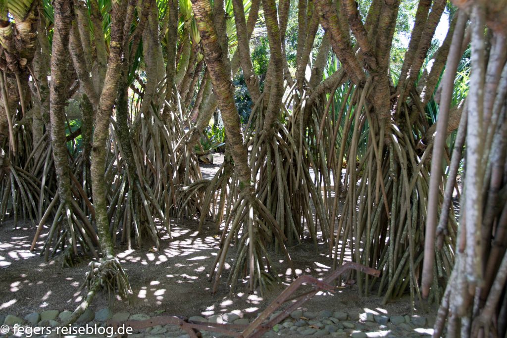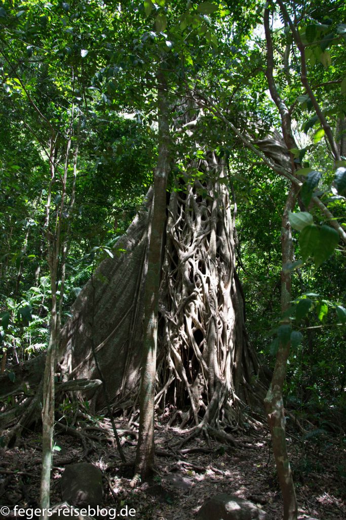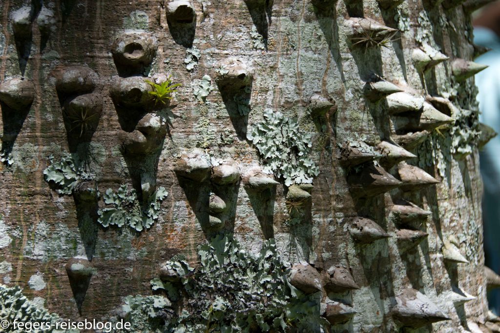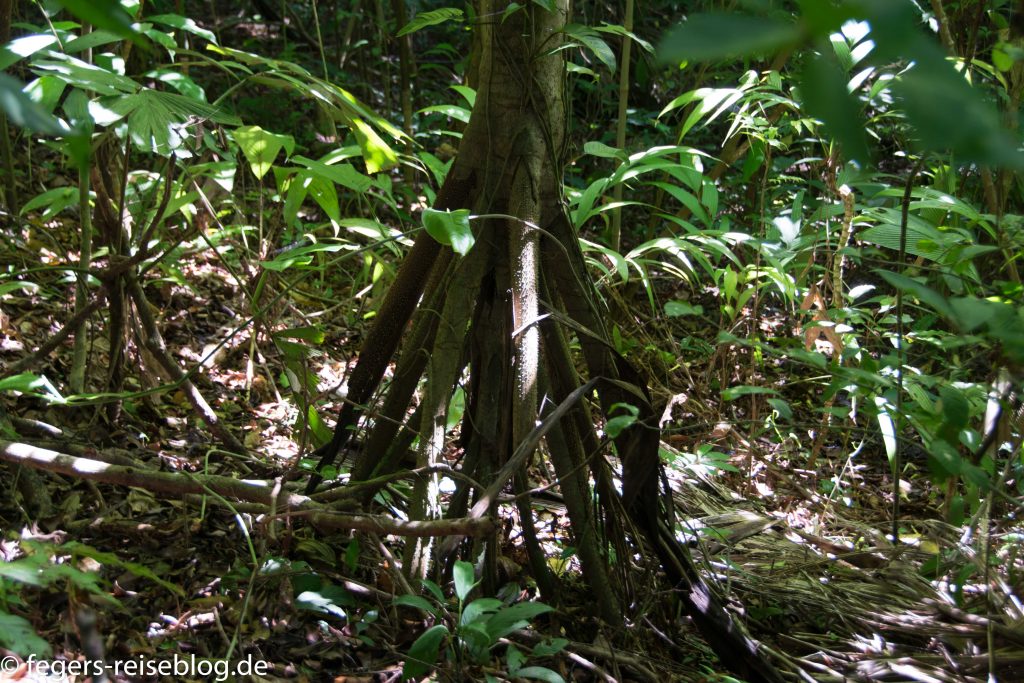 Weitere geniale Ideen der Natur sind Luftwurzeln, die von den Ästen in Richtung Boden wachsen. Der Stamm der Wanderpalme wiederum verzeigt sich über dem Boden wie zu einem Zelt zusammengestellte Äste. Diese Äste werden ständig neu gebildet, wodurch sich die Palme in einigen Jahren mehrere Meter bewegen kann. Ein weiters Beispiel für den Ideenreichtum der Natur ist der Sandbüchsenbaum: große Dornen am Stamm verhindern das Erklettern durch Tiere.