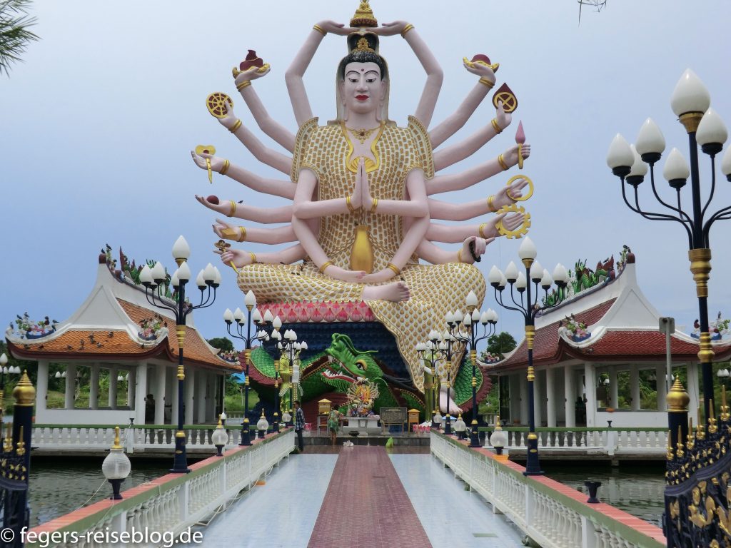 Der Big Buddha Temple (Wat Phra Yai) ist die eindrucksvollste Tempelanlage auf Koh Samui: riesige Statuen und bunte Dekoration lassen den Besucher staunen. Noch mehr staunt man allerdings über den mumifizierten Mönch im Wat Khunaram: der Mönch Luang Pho Daeng starb 1973 während der Meditation und verweste anschließend nicht. Er wird seither in aufrechter Position in einem Glasschrein ausgestellt.