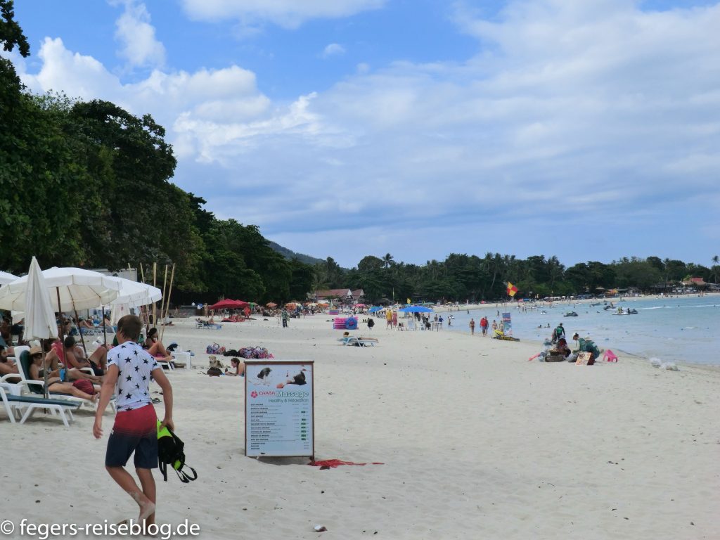 Der bekannteste Strand Koh Samuis ist Chaweng Beach an der Ostküste nahe am Flughafen. Doch die Beliebtheit hat ihren Preis: am und um den Strand tummeln sich viele Menschen. Alternativen gibt es in Hülle und Fülle, so z.B. Choengmon oder Maenam Beach. An vielen Stränden lässt sich abends mit den Füssen im Sand dinieren.