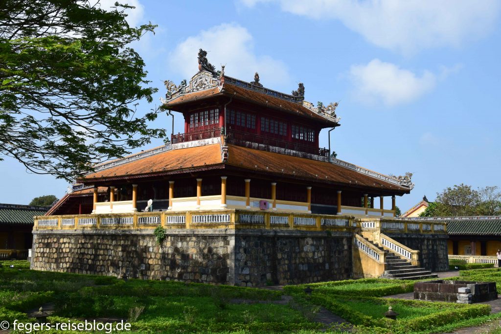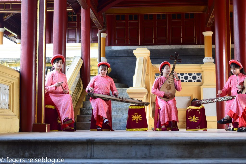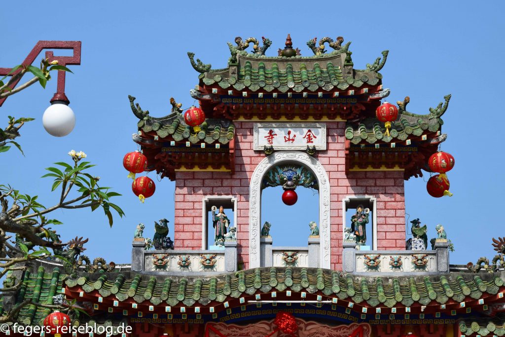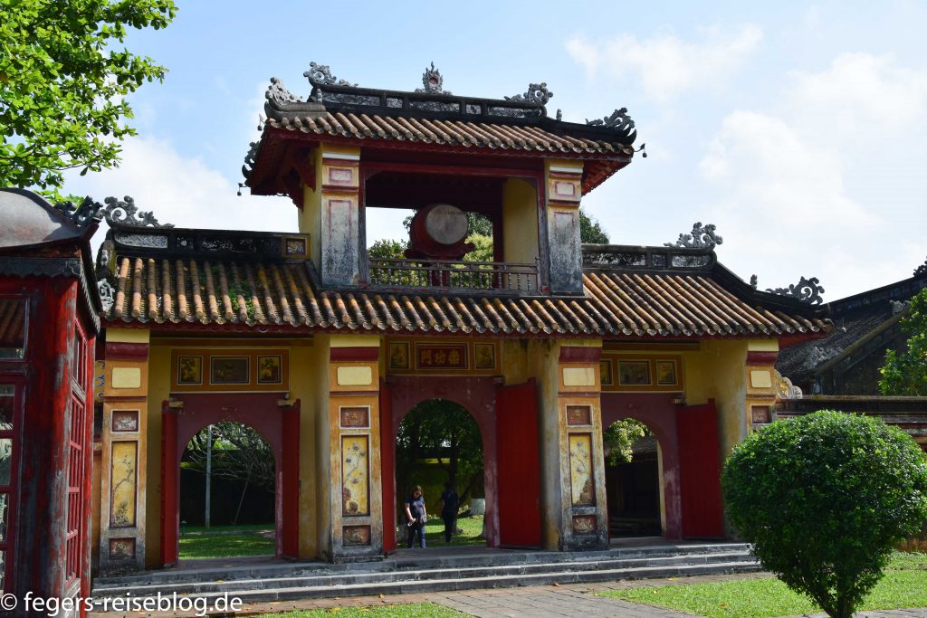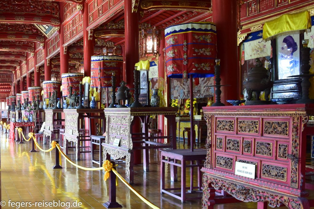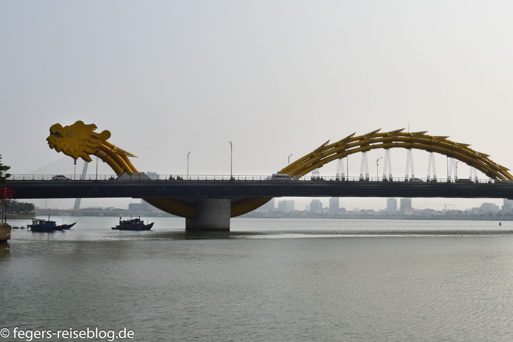 Der Eingang zum Kaiserpalast – Einheimische kleiden sich beim Besuch gerne in historische GewänderDen chinesischen Einfluss erkennt man am allgegenwärtigen DrachenschmuckTor zum inneren Bereich der PalastanlageIm Thronsaal sind alle Kaiser verewigtRobust gebautes kaiserliches WohngebäudeAuch an Hofmusikerinnen ist gedachtDie Japanische Brücke in Hoi AnDie Straßen von Hoi Ans Altstadt sind mit Lampions geschmücktWassertaxis oder für die abendliche romantische RundfahrtAbendstimmung in der Altstadt von Hoi AnIn einigen alten Häusern sind Museen untergebrachtEin altes japanisches HausEingang zum chinesischen TempelTouristenbespassung im Coconut VillageHier werden Fischernetze geworfenKrabbenfischen im Coconut VillageDie Drachenbrücke in Da Nang soll abends Feuer spucken