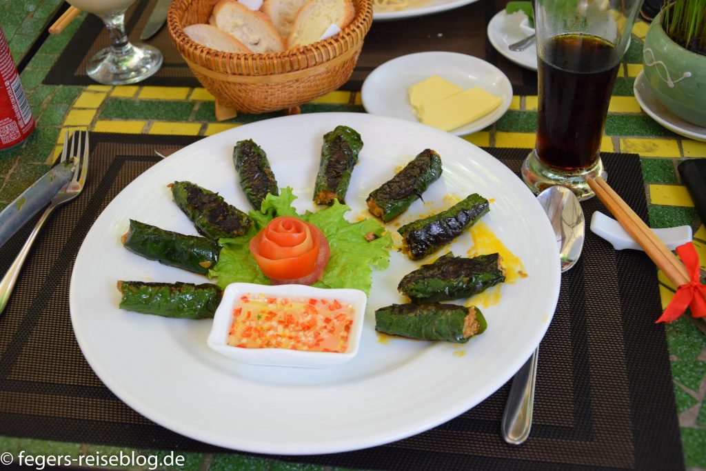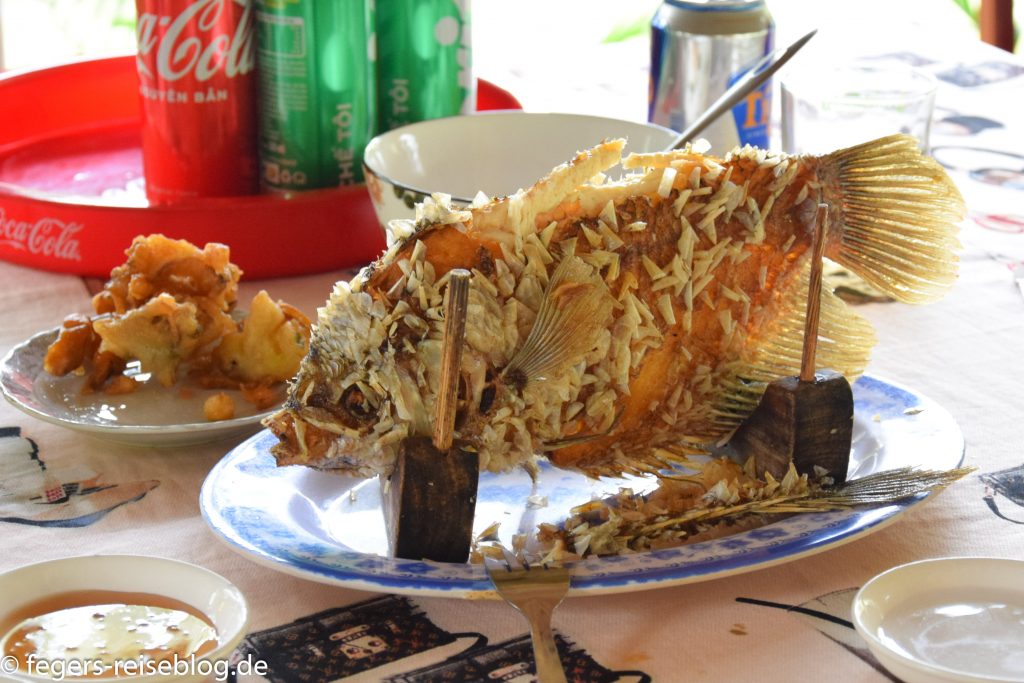 Grillplatte beim Pho-Nang-NationalparkBo la lot – mit Rindfleisch gefüllte Betelblätter – in HueGegrillter Fisch im Mekong-Delta