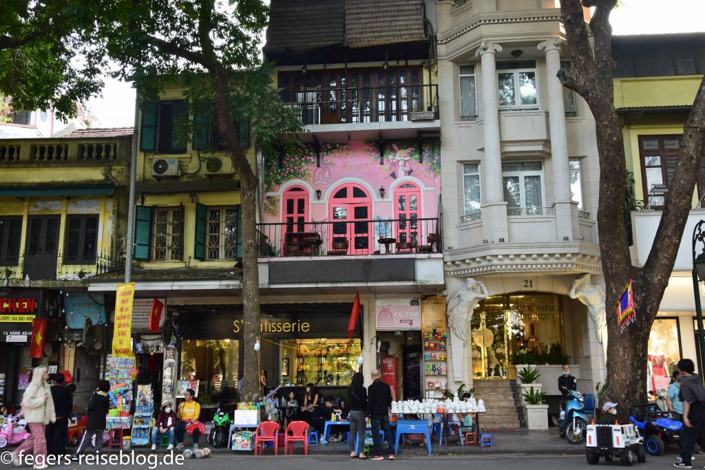 Der Hoan-Kiem-See mit dem Jadeberg-Tempel „Den Ngoc Son“ Französiches Flair im gleichnamigen ViertelDie Altstadtstraßen: ein riesiger MarktBereit für die GrillfeierPraktisch: Altstadttour mit einer Fahrad-RischkaIm Straßencafé gibts nur kleine HockerLeben an der EisenbahnlinieDer Literaturtempel ist ein Muss für SchulklassenAltar zu Ehren von Konfuzius im LiteraturtempelDie Einsäulenpagode ist fast 1000 Jahre alt – damals war die Säule aus Holz Die Einheimischen schwören auf ihre Nudelsuppe – hier in einem Straßenimbiss.Am Wochende ist die ganze Altstadt eine Fußgängerzone mit Live-Musik, teilweise in historischen Kostümen
