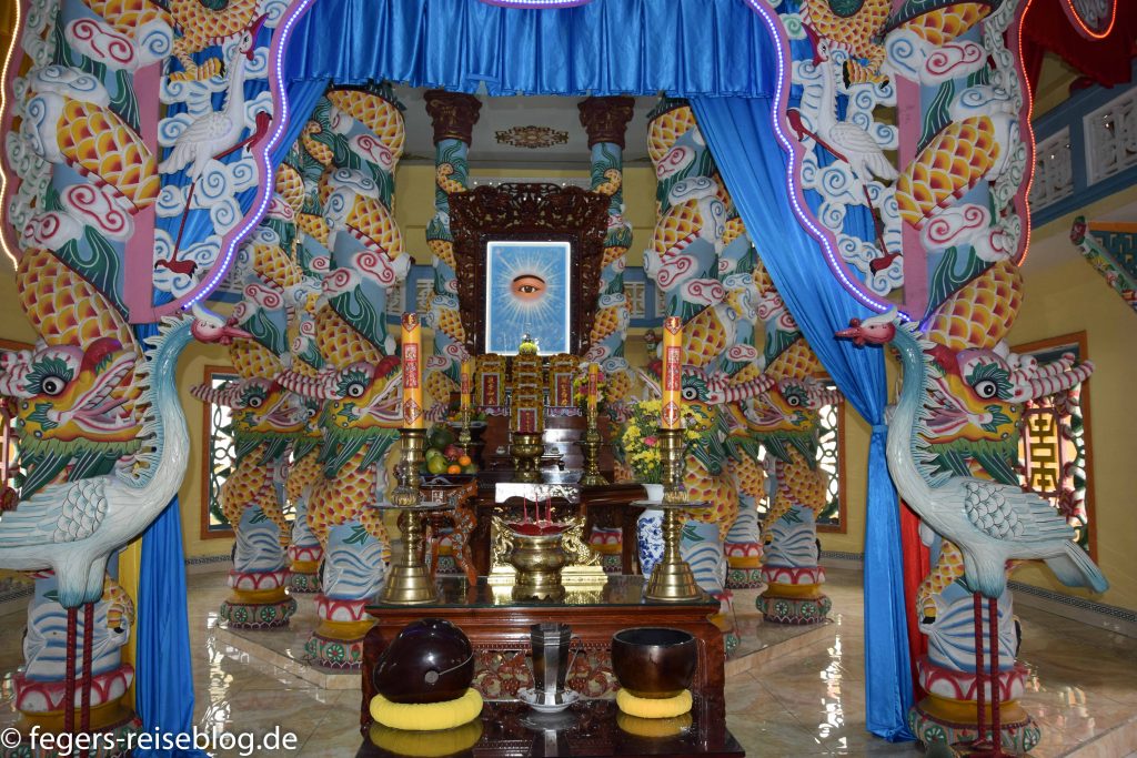 Im Wiederveinigungspalast wohnte früher der Präsident von SüdvietnamDas Postamt aus der KolonialzeitDas Opernhaus ist eine kleine Ausgabe der Pariser OperOnkel Ho grüßt vor dem RathausDie Pagode des Jadekaisers wurde von reichen Chinesen gebautFür Boote gibts auf dem Mekong RaststättenVerladen der KokosnussernteSüßigkeitenherstellung aus KokosnusskaramelBananenblüteBei diesem Tuk-Tuk wäre man gerne der FahrerTempel der Cao-Dai-Religion, die das Beste aus allen Religionen vereinen möchteStrandurlaub in Ho Tram: noch nicht überlaufenAuch am Pool ist noch PlatzBlick aus der Hotellobby
