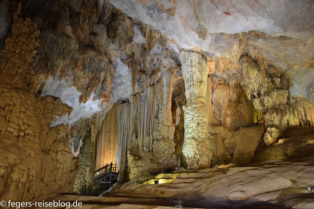Eingang zur Paradieshöhle Thien DuongAtemberaubende Felswände …Stalagmiten und StalaktitenLaut Forschern die längste trockene Höhle der WeltDer Rundweg durch die Höhle ist einen Kilometer langZur Phonh-Nha-Höhle fährt man mit dem BootVorbei an pittoresken HäusernDurch das „Drachenmaul“ geht es ins Innere des BergsDas Boot bringt die Besucher hundert Meter weit in die HöhleAuch die Phong-Nha-Höhle bietet phantastische FormationenNach der Höhlentour wartet eine Nudelsuppe mit lokalem BierDer Phong-Nha-Nationalpark ist dicht bewaldetDicke Brettwurzeln zieren die riesigen BäumeDurch solche Wälder wurde auf dem Ho-Chi-Minh-Pfad Nachschub für die Truppen transportiertDieser hübsche Wanderweg befindet sich im Botanischen Garten von Phong-Nha Wasserfall im Botanischen GaartenFür manche ist es ein Garten, für andere eine herausfordernde WanderungMilitärposten in Grenznähe zu LaosErdnussfeld in der Nähe des NationalparksEin Paradies für WasserbüffelSie finden den Weg nach Hause alleine!Nur für Mutige: Brücke Cầu Treo Chày LậpHobbithäuschen im Auenland