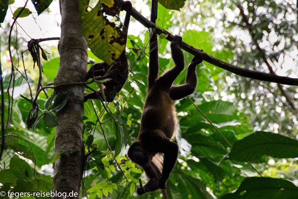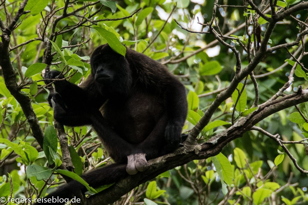Brüllaffen sind vor allem in den Küstenregionen präsent, und in der Morgendämmerung sorgen sie mit ihren markerschütternden Schreien, die bis zu 2 km weit hörbar sind, für das zeitige Erwachen von Touristen und Einheimischen gleichermaßen. Im Nationalpark Cahuita an der Karibikküste ließ sich ein Trupp Brüllaffen durch unsere Fotoaktivitäten nicht vom Fressen abhalten.