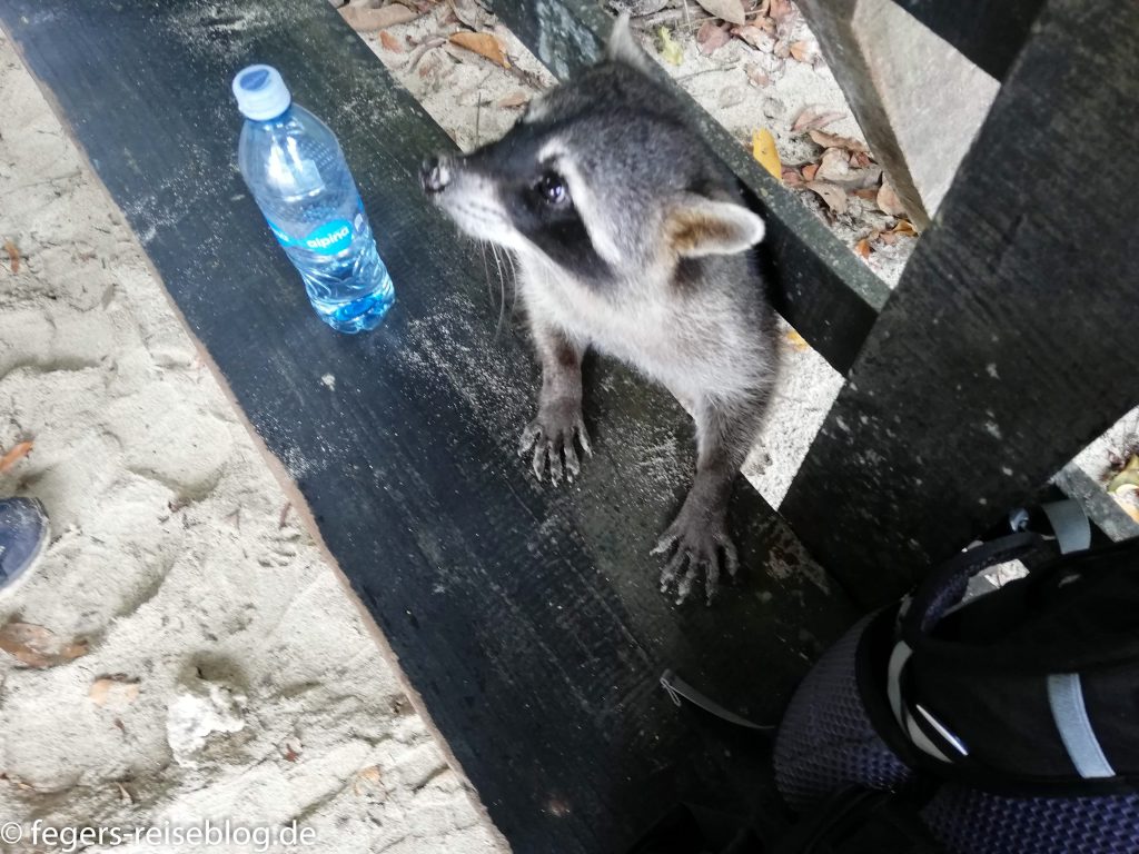 Nasenbären und Waschbären leben zwar überwiegend wild im Wald, suchen aber die Nähe von Menschen. So findet man Nasenbären gelegentlich bettelnd am Wegrand, während Waschbären in manchen Nationalparks versuchen Rucksäcke auszuräumen.
