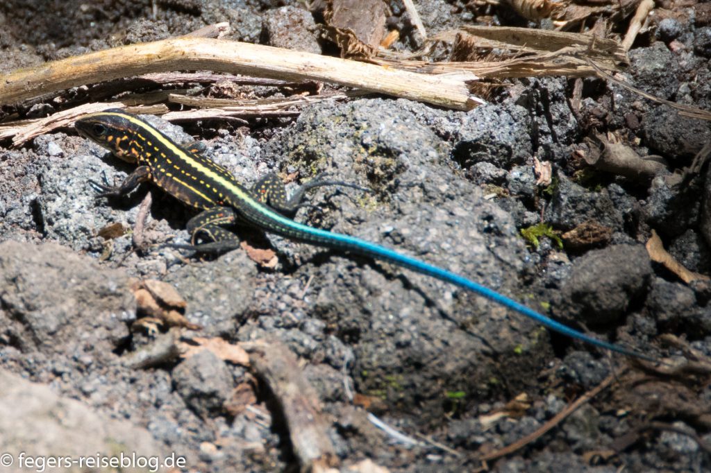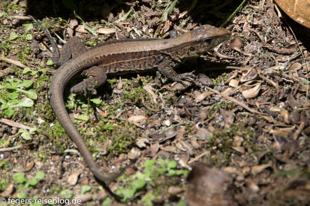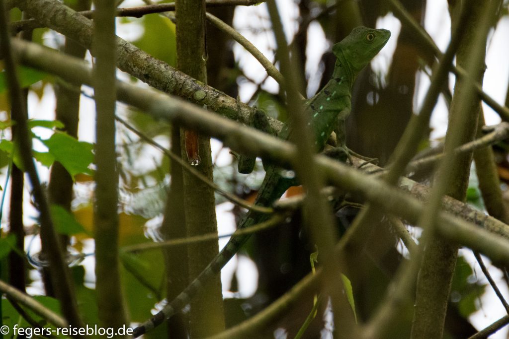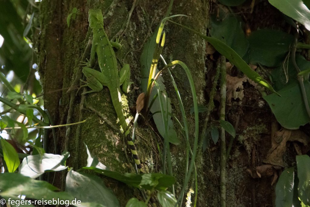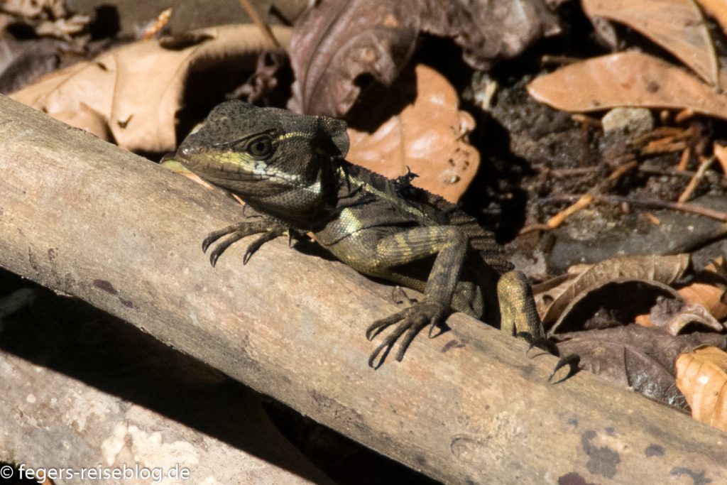 Kleinere Echsen sind der Stirnlappenbasilisk und verschiedene Ameiven, die Winzlinge unter den Echsen Costa Ricas.