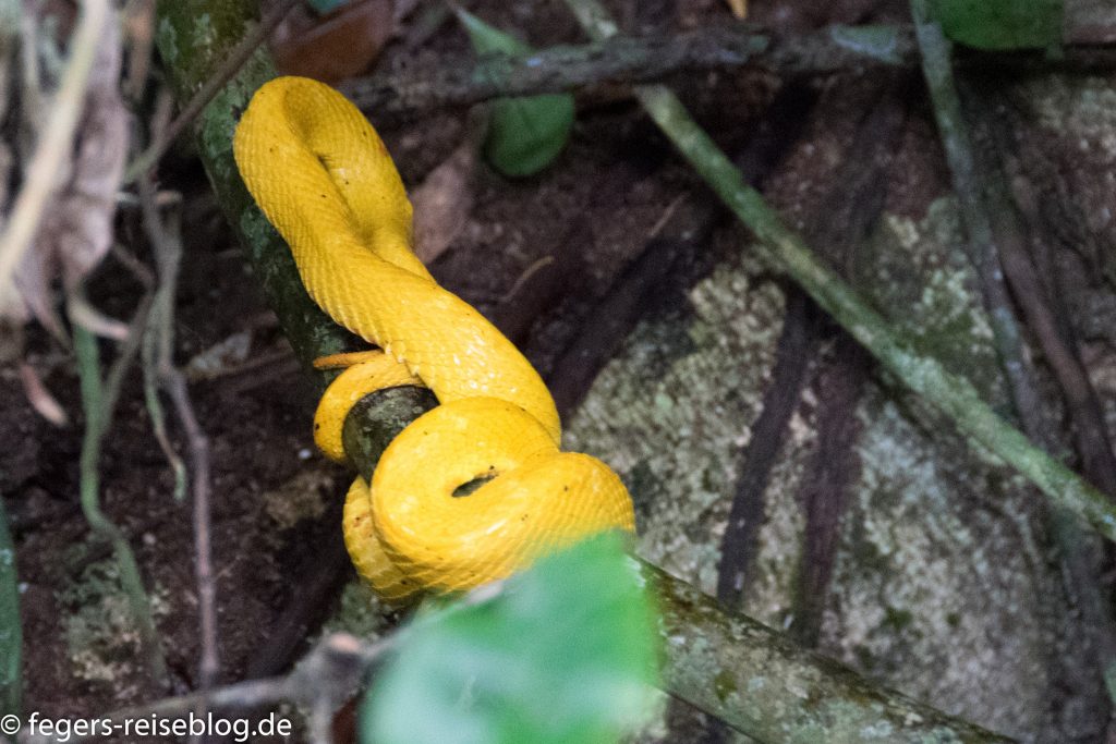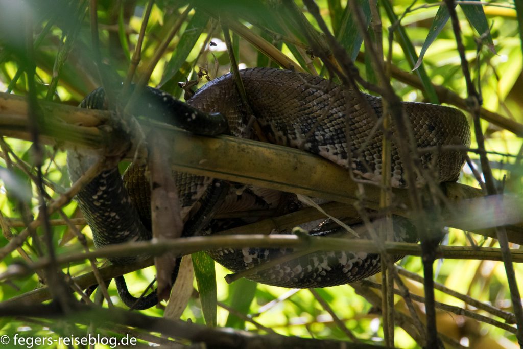 Von den vielen Schlangenarten bekommt man nur wenige zu Gesicht. Das ist auch besser so, denn viele sind extrem giftig, wie z.B. die Greifschwanz-Lanzenotter. Die Boa Constrictor würgt ihre Beute, ist aber für Menschen eher ungefährlich.