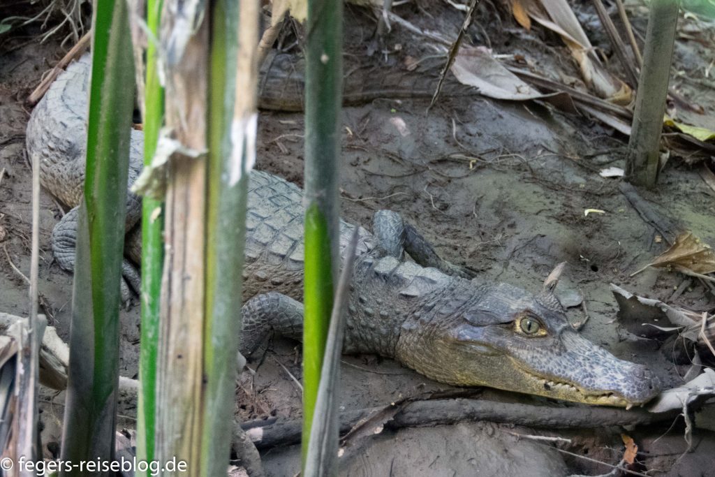 Neben den großen Krokodilen, die vor allem in den großen Flüssen vorkommen, gibt es noch die kleineren Kaimane. Diese findet man eher in den Mangrovenwäldern der Pazifikküste.